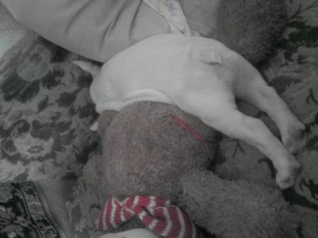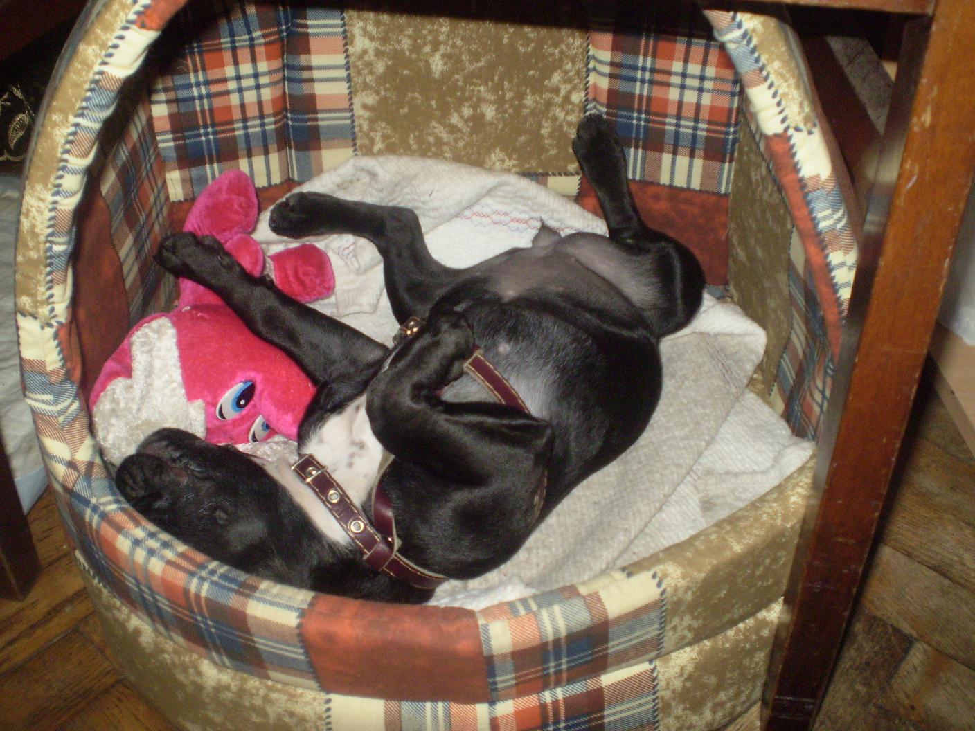А так она спит! Правда чаще всего задние лапы лежат на мне! :rolleyes: