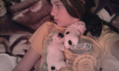 Я ее обожаю просто))))Это такое счастье :D Непоседа жуткая)))) У вас тоже, когда крошками были, носились без конца? Только и норовит что-нибудь сгрызть, кусается, зубки остренькие. Только вот кошка никак не примет нашу Полю. Сидит на подоконнике, она подбегает к ней, заигрывает, лает, а та только шипит, шерсть дыбом...Мне кажется они никогда не подружатся :D