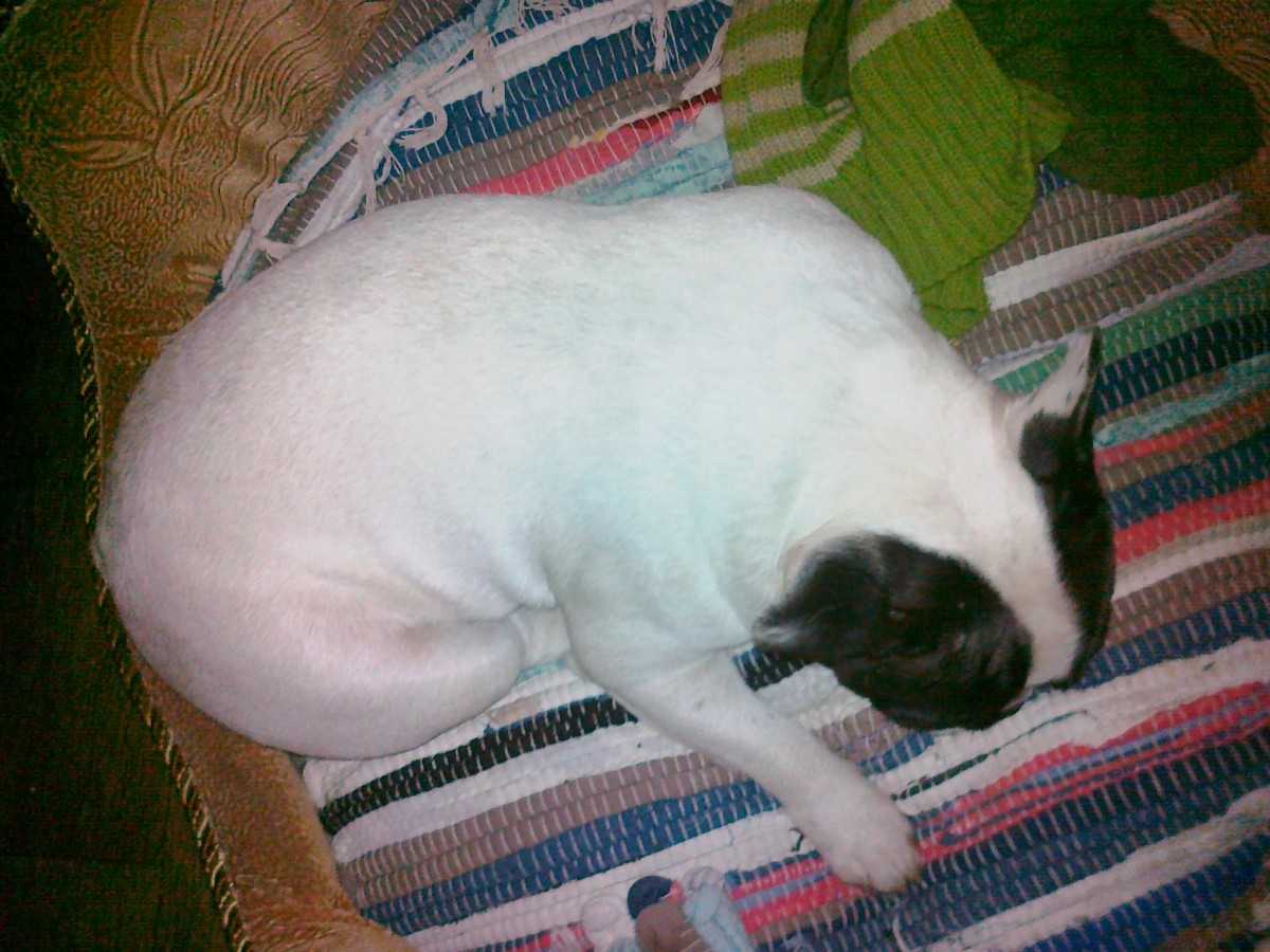 Мы свою зацеловываем.... Она уже прятаться начинает от ребенка когда он говорит: " Кнопочка, я тебя так люблю! Иди ко мне, я тебя поцелую..." Реакция собачульки просто умилительная - она прячем мордашку между лапками и начинает громко кряхтеть :P А когда деть говорит:"Ну ладно, я передумал..." У Кнопы прям вздох облегчения... Но потом сама подходит и начинает зализывать моего сынульку